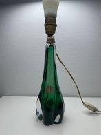 - Val Saint Lambert - Lampe de table - CristalLampe en cristal vert val saint lambert avec pied sculpté et monture en laiton, datant des années 1950–1960, haute de 30 cm et largeur de 13 cm, fonctionnelle avec système électrique d’époque et rempl