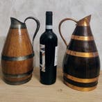 - Cruche - Bois, Métal, Cuivre - Deux carafes pour le vin ouPaire de carafes françaises faites à la main en bois, fer et cuivre/brass, d’époque 1930–1940, en bon état vintage avec patine.