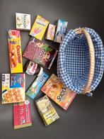 29 mars 26GovaertsMalines - Panier garni en osier - Marchande enfantPanier en osier avec tissu vichy bleu/blanc. 10 Miniatures de produits de marque en carton, 1 pot de nutella en plastique et 1 carte de banqueUtilisé Enlèvement
