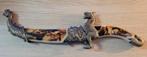 20 mars 26Z-EWandre - Ouvre-lettre chevalier en laiton sur socle en cuir vontageOuvre-lettre vintage en laiton en forme de dague à poignée représentant un chevalier en armure, sur support en cuir mural portant la date 1732 mais plus vraisemblablement des années 60! Du plus grand