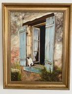 - H. Dammen (XX-XXI) - Kat in vensterKat in venster is een origineel olieverfschilderij op doek van h. Dammen (xx-xxi), gemaakt in 1997 in nederland, met afmetingen 47 cm hoog en 37,3 cm breed, in fotorealisme stijl met een lentetafereel