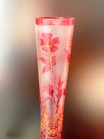 - Val & Cie / Daum - Vase - Verre - Vase Val&Cie produit DaumGros vase en verre trompette, double vitrage opalescent rose/mauve avec une couche extérieure rouge carmin profond, décor floral art nouveau et attribué à val & cie / daum, originaire de lorraine,