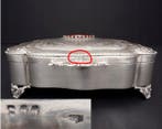 - Boîte à bijoux - Rare coffret à bijoux en argent italien 800Coffret bijoutier italien rare en argent 800, octogonal, cabochons en agate brune, intérieur en velours marron, dimensions 19 × 17 cm, hauteur 9 cm, poids 515 g, période milieu du xxe siècle, avec mar