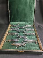 17 juin 24LSTTremelo - Ensemble de porte-couteaux vintage en argent Art DécoEnsemble de porte-couteaux art déco vintage argenté - argenté porte-couteaux porte-couverts vaisselle ancienne porte-couteaux pour chien hermès similaires trouvés chasse à thème : la chasseEnlèvement ou Envoi