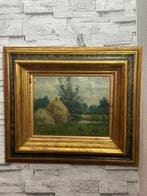 Avant-hierSvenDendermonde - Frans Callebaut (1856-1930) - HaystacksHaystacks, een 19e eeuws belgisch kunstwerk van frans callebaut (1856–1930), gedateerd 1890, uitgevoerd in gemengde techniek in een klassieke stijl, handgesigneerd, met afmetingen 33 cm hoog en 39 cm