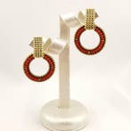 - Corail - Argent - Boucles doreilles - artisanat italienéchantillon : boucles d’oreilles en argent 925 plaqué or jaune, corail rouge méditerranéen corallium rubrum naturel en design circulaire ouvert; poids total environ 13 g, dimensions environ 4 × 3 cm.