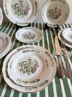 20 mars 26GeoffUccle - Sarreguemines - Assiette de service (14) - Modèle ROYAN -Sarreguemines royan lot de 14 pièces en porcelaine blanche, bord fleuri et végétal d’inspiration japonaise en rose et vert, bordure dorée, modèle royan, digoin, france, dimensions 40 × 35 × 30 cm, com