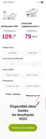 Comme neuf Enlèvement€ 20,005 nov. 25Enlèvement Comme neufCpl devolo internet tv ,proximus, scarlet, voo. Ps. Il faut un adaptateur pour le système de prises électriques