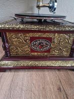6 juil. 25DannyHerzele - Soundmasters - Reproduction de gramophone 78 tours parSoundmasters reproduction de gramophone 78 tours/min en très bon état, testée et fonctionnelle, pesant 10 kg et mesurant 67 cm × 37 cm × 37 cm, incluant un jeu supplémentaire d’aiguilles et un disque