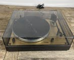 - Thorens - TD 146 Tourne-disqueTurntable thorens td 146 en édition usine rare avec plaque supérieure dorée, testé et opérationnel, livré avec alimentation externe et capot d'origine.