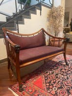 - Canapé - BoisDivan en bois de cerisier du xxe siècle, style néoclassique, forme contournée, dossier ajouré et pieds en forme de pattes félines; dimensions 120 cm (l) x 80 cm (h) x 55 cm (p), état général bon avec