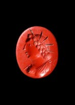 15 avr. 25Pub au topCaravan-expo RonseRonse - Romain antique Jaspe rouge Eau-forte avec Tête rayonnanteIntaille romaine en jaspe rouge représentant une buste drapée et radiée de profil, datée environ du ier au iiie siècle apr. J.-C., Mesurant environ 1,5 cm sur 1,2 cm, en bon état et authentique, prove