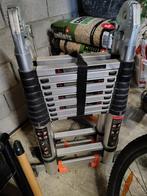 échelle télescopique avec 3,8 mètres et 4,4 mètres sous poutre. Nouvelle échelle télescopique de 3,8 mètres avec poutre inférieure. L'échelle télescopique peut être fixée à différentes hauteurs, de 88 cm à 380 cm. Testé et conforme aux exigences ...