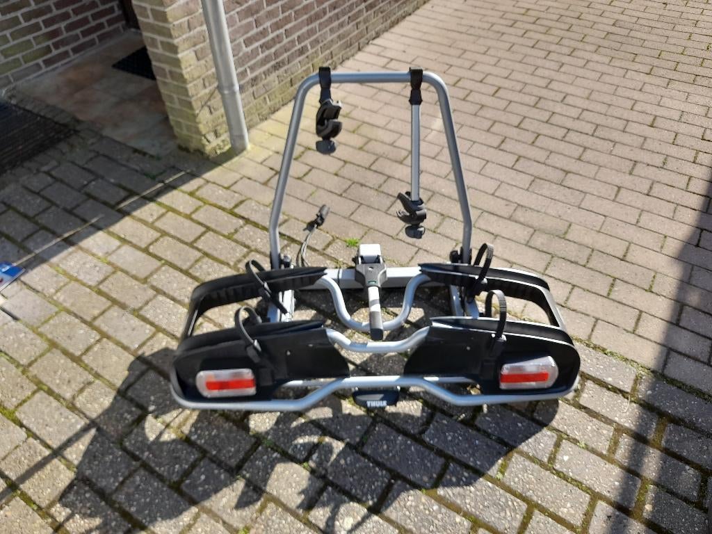 HierTimLommel - Thule fietsdrager 3 fietsen lichtgewichtVolledig aluminium, lichtgewicht zwart 3 fietsen volledig afsluitbaar one-click-fit op de trekhaak in 10 sec inschuifbaar voor vervoer in de auto kantelbaar met fietsen erop achter de auto om nog in dComme neuf Enlèvement
