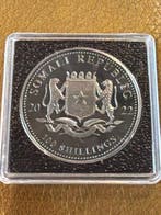 HierPub au topCatawikiToute la Belgique - Somalie. 100 Shilling 2022 Elefant -Keramik-Beschichtung /2022 somalie pièce d'argent de 1 once avec revêtement céramique 'éléphant' et finition ruthénium, encapsulée, pureté 999/1000, diamètre 38,7 mm, poids 31,1 g.
