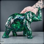 Avant-hierSpartacusWillebroeck - Éléphant en malachite magnifique – chef-dœuvre en pierreéléphant en malachite naturel nommé prächtiger malachit-elefant – meisterwerk aus natürlichem malachit, origine kongo, poids 3257,68 g.