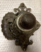 25 mars 26lunaHouthulsttrès ancien encrier (encore à moitié plein) CASTORIAEnlèvement ou Envoi UtiliséHouthulst25 mars 26 - Encrier - RéguleUn antique objet de bureau art nouveau en spelter avec un vase en verre, d’origine allemande, circa 1900–1910, en bon état avec de légères traces d’âge.