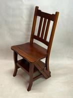 - Marches - échelle de bibliothèque / chaise - Bois - EscabeauVintage néerlandais en bois bibliothekstrepstoel, modèle bibliothekstrap / chaise, daté circa 1970–1980, en bon état d’utilisation avec de petites traces d’usure et des taches, se replie en chaise, po