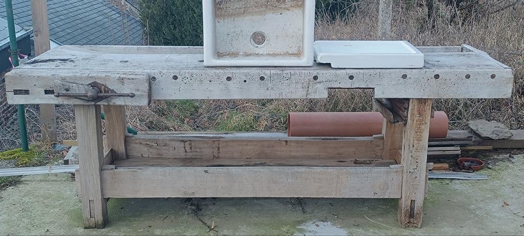 Aujourd'huiAnnonce au topA.HomeStoumontEtabli de menuiserie ancienEnlèvementEn bois massif (lourd). Avec étau et serre-joints en métal. Pieds arrières plus courts.StoumontAnnonce au topAujourd'hui - ancien établi en bois, table de travail, table d'appointLes prochains dimanches de shopping tombent les 19 avril et 17 mai. Puis ouvert à partir de 11 heures. Voici, en revanche, un établi plus long et relativement bas avec étau et étagère inférieure. Il aEnlèvement