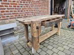 Etabli ancien.avec étau. Un fond de pied abîmé, les planches du bas également.dimension : 2m et la tablette de 6cms.