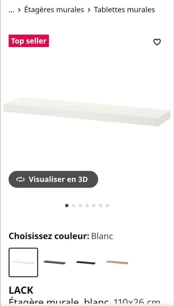 - Étagère murale2 étagères murales ikéa, 110 x 26 cm, blanches. Fixations invisibles. Un petit coup sur le coin supérieur côté mur sur une des étagères. Juste sorties de l'emballage, vendues car les murs ne sontEnlèvement