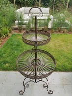 6 avr. 26UltrasonAnderlecht - Étagère - FerBac à fleurs en fer forgé, debout, d’origine européenne, période estimée 2020+, hauteur 150 cm, largeur 58 cm, profondeur 58 cm, en excellent état.