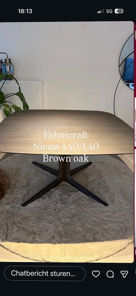 19 avr. 26Nicolas M.Wevelgem - Ethnicraft design tafel nieuw1.40/1.40 Voor 6-8 personen nieuw , nooit gebruikt enkel uit verpakking gedaan,nieuwprijs 2390€Neuf Enlèvement Cinq personnes ou plus