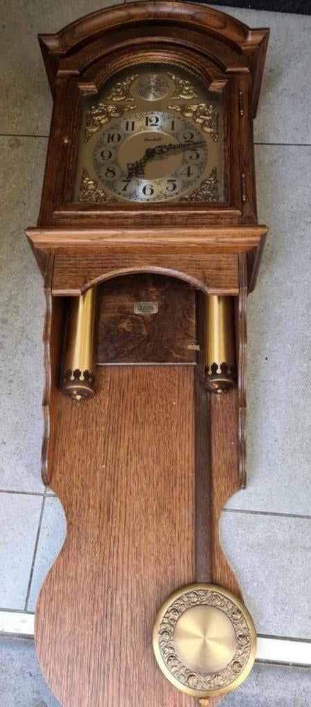 Avant-hierLouiseDenderleeuw - hangklokSlingerklok eurobell: tempus fugit is latijn voor "de tijd vliegt". Antieke wandklok / slingerklok eurobell in donker eik met een "big ben" slag en 3 gewichten en maakt om het kwarComme neuf Enlèvement