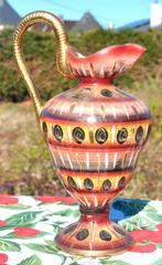 24 juin 19jourdechineJemappes - Aiguillere / Vase Henri BequetAiguière ou pichet en faïence de la faïencerie hubert bequet quaregnon, en belgique. Céramiques belges très colorées et souvent finies avec une bordure dorée, typiques de la production des années 1950Enlèvement