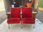 - Fauteuil - Bois, Textile - Deux fauteuils vintage de théâtreDeux sièges de cinéma vintage des années 1970, restaurés récemment et en état proche du neuf, rembourrés de velours rouge sur bois, avec une base métallique.