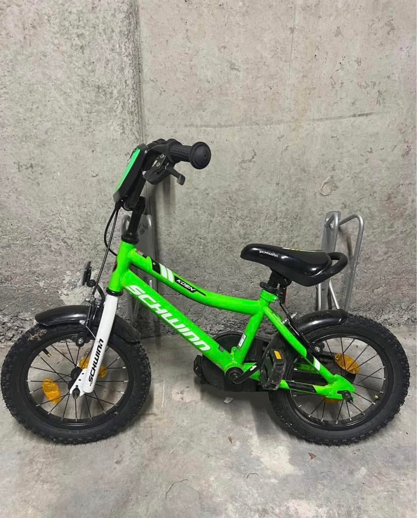 - KinderfietsNiet veel op gereden geweest - klein gaatje in zadel door verhuis en de stickers vooraan op het zwarte plastice stuk is eraf inch weet ik niet net ( hier reed mijn 3-4 jarig zoontje erop )Comme neuf Enlèvement