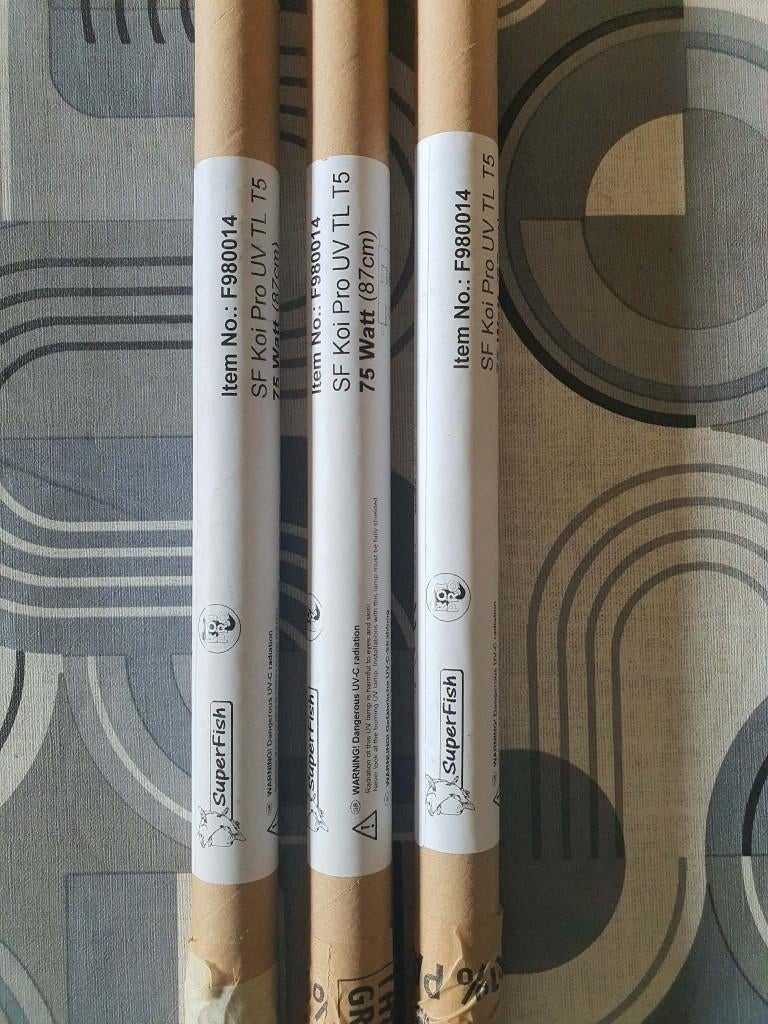 - 3 lampes UV-C/UV TL T5 75 W — SF Koi Pro (nouveau)à vendre : 3 nouvelles lampes de rechange uv‑c t5 75w (87 cm). Jamais utilisé, toujours dans son emballage d'origine prix : 60€ chacun ou 180€ pour les 3 ensemble. À Récupérer. EnvoyezNeuf Enlèvement