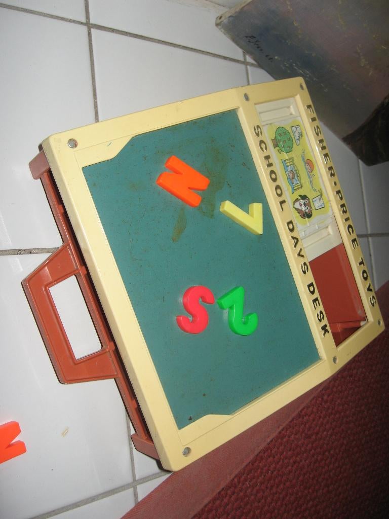 13 mai 21LucieGozee - Tableau d'apprentissage Fisher PricePupitre de jeux fisher-price, datant des années 1980. Chiffres et lettres aimantées, craies, cartes pour apprendre des mots et des phrases. A venir chercher sur hannutUtilisé Enlèvement