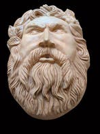 - Sculpture, Decorazione da parete Testa Di Bacco - 34 cmDécoration murale fontaine représentant bacchus, finition à la main, moulage en pierre, beige, 27 × 34 × 10 cm, 6,7 kg, origine italie, bon état, non signé.