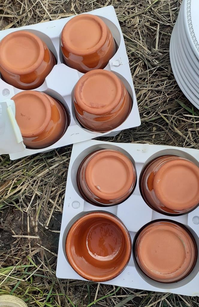 11 mars 26sunnysideupTienen - Céramique10 petits ramequins en terre cuite de 9 cm. De diamètre et 3 cm. De hauteur. Peuvent aller au four. Pratique pour servir des petits gratins dauphinois individuels, des crèmes brûlées, des portions deNeuf Enlèvement ou Envoi