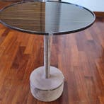 4 oct. 25steenstraeteGistel+Deel Westkerke - Lira - Centre de table - 50 lires - Acier, SuèdeTable lira, pièce originale artisanale de bruno bernardini de la série lira, structure en bois de noyer massif recouvert de cuir suédé, plateau en contreplaqué marin avec placage ébano macassar et fer