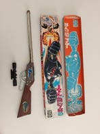13 avr. 26NicolasAndenne - Matsushiro Toy industry - Jouet en étain - Tetsujin 28 goFusil jouet tetsujin 28 go gigantor fabriqué par matsushiro toy industry au japon dans les années 19601970, en métal, état excellent, 50 cm de largeur, avec sa boîte originale.