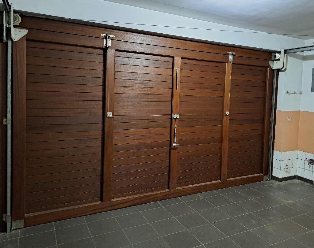 19 janv. 26Van Neck LucHofstade - GaragepoortGaragepoort in hout, 2m45 breed, 2m10 hoog. Poort is in goede staat, enkel de buitenzijde heeft wat liefde nodig, of eventueel nieuwe bekleding. Binnenzijde heel goeie staat. Mechanisme in perfecte stEnlèvement