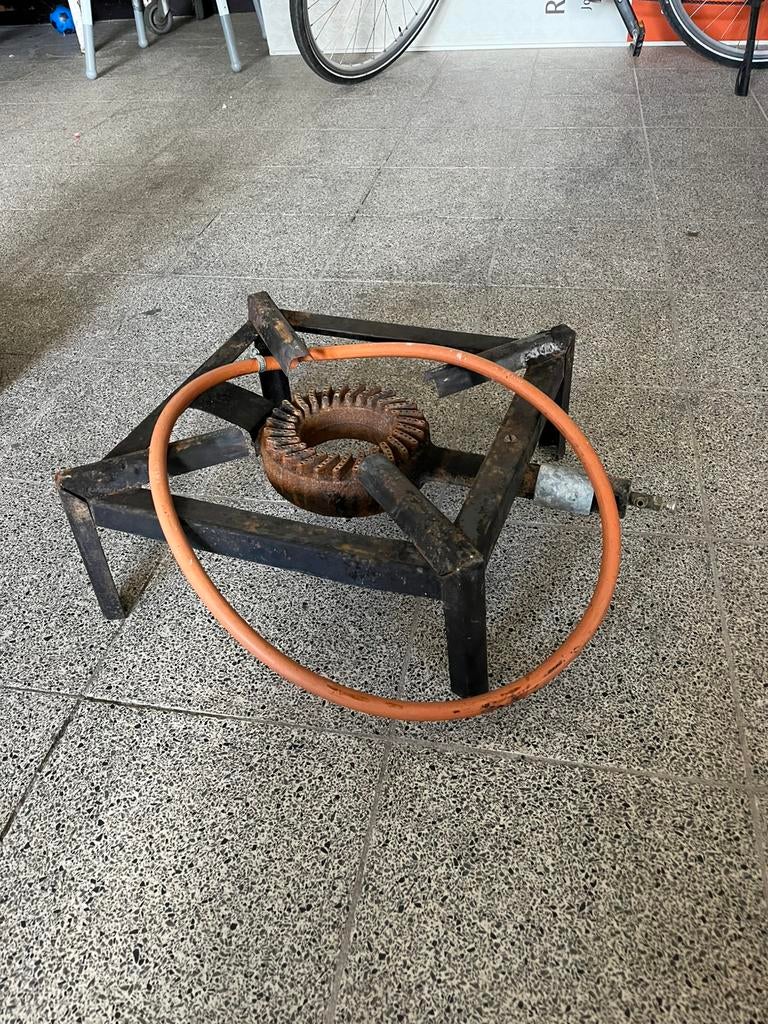 29 mars 26DirkBrugge - gasvuur - gasbekken - gaspitGasvuur op propaangas. Ideaal voor een grote kom soep, chocomelk of dergelijke op te warmen op uw winterevent of als kookploeg op kamp, braderie,... Huurprijs: 15€/weekendComme neuf Enlèvement ou Envoi