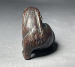 HierPepijnKnokke - Japanse houten netsuke – ram (bok) figuur – Edo-periode -Een enkele uit hout gesneden japanse netsuke van een zittende ram (geit) met twee himotoshi, toegeschreven aan de edo-periode, 3 cm hoog bij 4 cm breed bij 2,5 cm diep, oorsprong japan, in goede staat