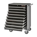 - Gereedschapswagen zwart 9 laden leeg met quick lockZeer degelijke gereedschapswagen met 9 laden. Kleur: glanzend zwart. Quick lock functie op alle laden. Afmetingen: 68 x 46 x 100 cm. Voorzien van kunststof matten in de laden. 9 Laden met binnenafmetiOphalen of Verzenden