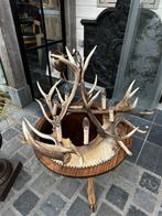 - Lustre rural en bois d'orignal, voir descriptionLustre country en bois d'orignal, ancien, provient d'un château, dimensions hauteur totale 74 cm - largeur entre 98 et 120 cm = (diamètre) le lustre est composé de 8 bois d'orignal, il y aComme neuf Enlèvement