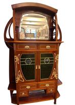 - Vitrinekast - Mahonie - Art NouveauArt nouveau vitrinekast/sideboard van mahonie met messing inlegwerk en glas-in-lood, gedateerd circa 1900–1910, afmetingen: 202 cm hoog, 126 cm breed en 44 cm diep, in uitstekende staat. Art nouveau v