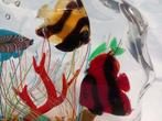 Murano glazen aquariumsculptuur, met de hand vervaardigd in italië, gesigneerd aan de onderkant, met certificaat van echtheid; afmetingen 24 × 18 × 5,5 cm, gewicht 5,5 g, in goede staat, met luchtbelletjes, koraal en vijf vissen. Door het handgemaakt...