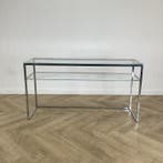 Aujourd'huiPub au topDominidesignToute la Belgique - Glazen design sidetable, (hxbxd) 79x148x44 cm, glas - chroomOntdek de elegantie van een tweedehands glazen design sidetable. Met afmetingen van 79x148x44 cm en een chroom afwerking, voegt dit meubelstuk een moderne touch toe aan je interieur. Dit product wordt