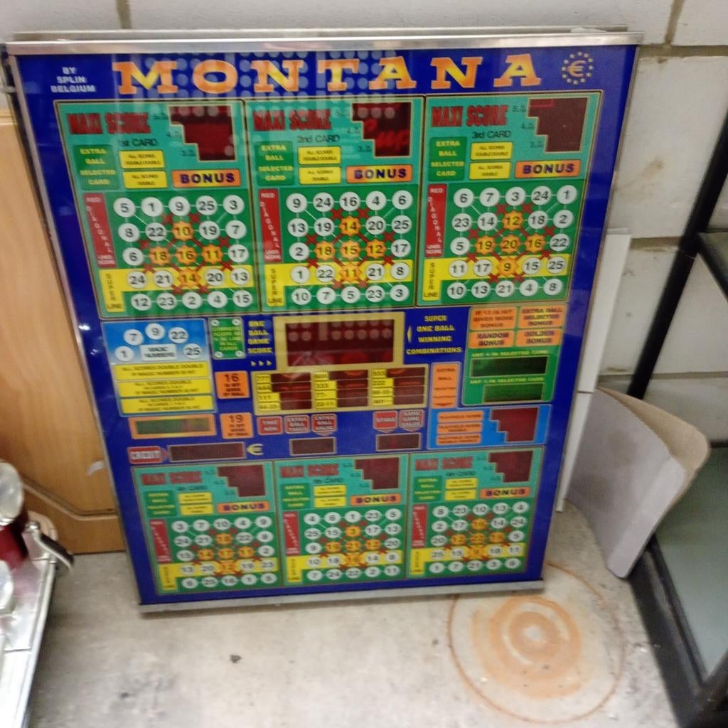 - Bingo Montana Deluxe SplinBingo complet ou en pièces détachées pour montana deluxe splin. Bingo fonctionnel mais codé car la porte a été ouverte pendant le fonctionnement et je ne connais pas le code de l'exploitant.Utilisé Enlèvement