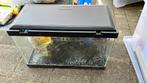 - Aquarium avec gravier et pompe.Aquarium +/- 30x30x20 cm avec gravier, pompe et décoration grotte. Lampe dans le couvercle de l aquarium.Utilisé Enlèvement