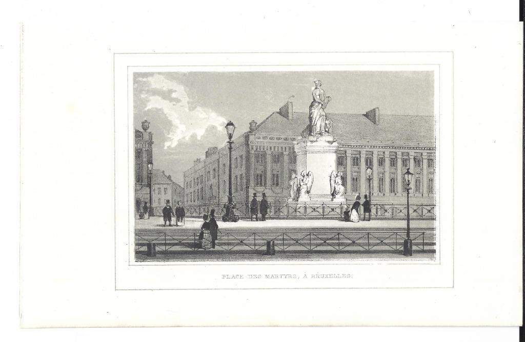 13 nov. 23RobertSint-Truiden - 1844 - Martelarenplein Brussel / Place des Martyrs BruxellesTitel : « place des martyrs à bruxelles » originele zeldzame lithografie van 1844 op stevig papier uitgegeven door c. Muquard te brussel. - Afmetingen blad :ca. 217 X 136 mm - afmetingen litho: 147 xEnvoi