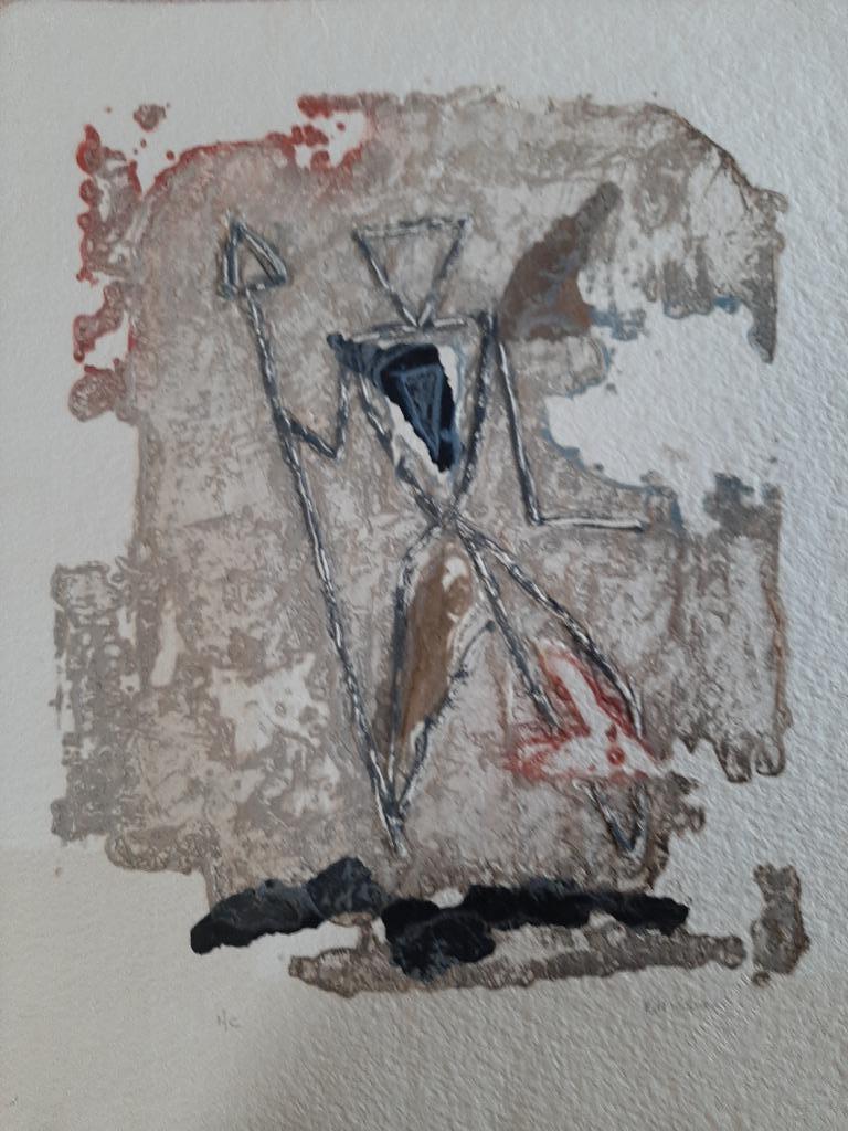 19 oct. 24christinaTielt - Pierre Marie Brisson (1955 Orléans)Gravure intitulée « chasse prehistorique i » 56,5 x 45 cm à gauche au recto au crayon : « hc » signé au crayon au verso à droite, également signé au crayon + titre manuscrit pierre marie brisson s'Enlèvement
