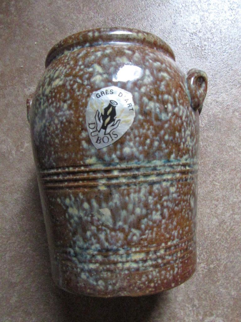 30 sept. 24yvesNivelles - pot en grès Dubois Bouffioulx fait main Grès d'Artétiquette "grès d'art dubois" et derrière "tourné main bouffioulx" coup sur le dessous (voir photo)Enlèvement